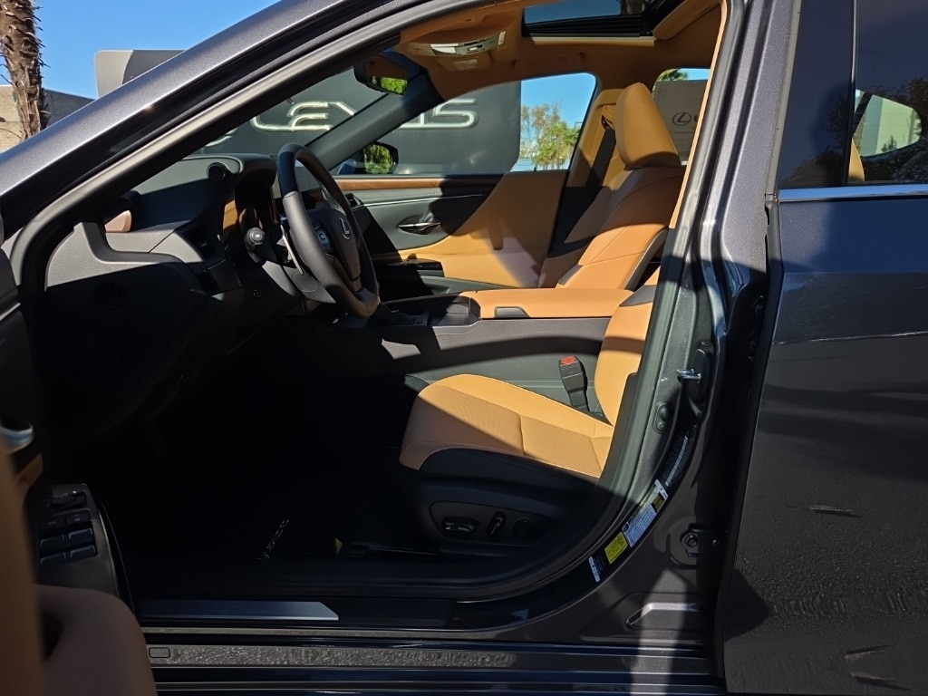 Gray 2025 Lexus ES 350 FWD 8-Speed Automatic 3.5L V6 DOHC 24V Palomino Perforated Nulux Artificial Leather, 10 Speakers, 4-Wheel Disc Brakes, ABS brakes, Accessory Package (Z1), Air Conditioning, Alloy wheels, AM/FM radio: SiriusXM, Auto High-beam Headlights, Auto-dimming door mirrors, Auto-dimming Rear-View mirror, Automatic temperature control, Brake assist, Bumpers: body-color, Cargo Net, Carpet Trunk Mat, Compass, Delay-off headlights, Driver door bin, Driver vanity mirror, Dual front impact airbags, Dual front side impact airbags, Electronic Stability Control, Emergency communication system, Exterior Parking Camera Rear, Four wheel independent suspension, Front anti-roll bar, Front Bucket Seats, Front Center Armrest, Front dual zone A/C, Front Power Seats, Front reading lights, Fully automatic headlights, Garage door transmitter: HomeLink, Heated & Ventilated Seats, Heated door mirrors, Heated Leather 3-Spoke Steering Wheel, Illuminated entry, Intuitive Parking Assist w/Auto Braking, Key Gloves, Knee airbag, Leather Shift Knob, Leather steering wheel, Lexus Memory System, Low tire pressure warning, Navigation system: Drive Connect Cloud Navigation (subscription required), Occupant sensing airbag, Outside temperature display, Overhead airbag, Overhead console, Panic alarm, Parking Support Alert/Brake, Passenger door bin, Passenger vanity mirror, Perforated NuLuxe Seat Trim, Perforated NuLuxe Seat Trim (LD), Power door mirrors, Power driver seat, Power moonroof, Power passenger seat, Power steering, Power Tilt/Telescoping Steering Wheel, Power windows, Premium Package, Premium Paint (PJ), Radio data system, Radio: Lexus Interface w/8" Touch Screen, Rain Sensing Wipers, Rear anti-roll bar, Rear reading lights, Rear seat center armrest, Rear side impact airbag, Rear window defroster, Remote keyless entry, Security system, Speed control, Speed-sensing steering, Steering wheel mounted audio controls, Tachometer, Telescoping steering wheel, Tilt steering wheel, Traction control, Trip computer, Turn signal indicator mirrors, Variably intermittent wipers, Wheel Locks, Wheels: 17" Twin-V-Spoke Alloy, Wheels: 18" Split-10-Spoke Two-Tone Alloy, Windshield De-Icer, Wireless Apple CarPlay/Wireless Android Auto, Wireless Charger, Palomino Perforated Nulux Artificial Leather.22/32 City/Highway MPG