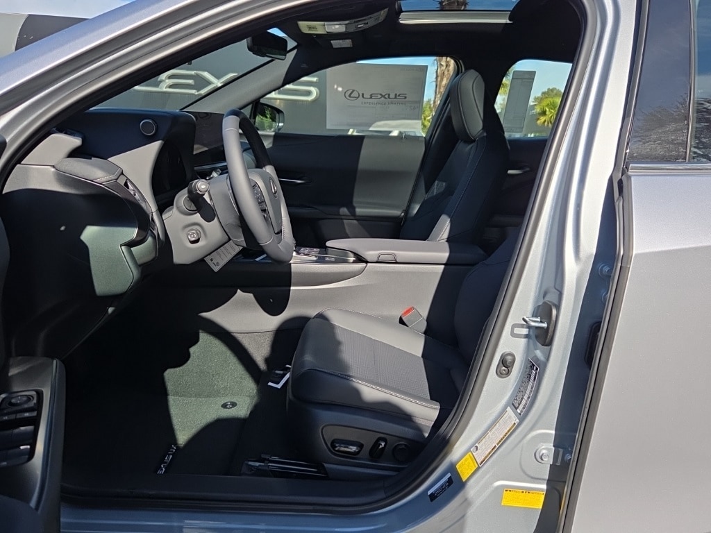 Iridium 2025 Lexus UX 300h Premium AWD eCVT 2.0L I4 DOHC 16V 2.0L I4 DOHC 16V, 3.605 Axle Ratio, 4-Wheel Disc Brakes, 6 Speakers, ABS brakes, Accessory Package (Z1), Air Conditioning, Alloy wheels, AM/FM radio: SiriusXM, Apple CarPlay/Android Auto, Auto High-beam Headlights, Auto-dimming Rear-View mirror, Automatic temperature control, Brake assist, Bumpers: body-color, Cargo Mat, Cold Area Package, Compass, Delay-off headlights, Driver door bin, Driver vanity mirror, Dual front impact airbags, Dual front side impact airbags, Electronic Stability Control, Emergency communication system: Safety Connect (10-year trial), Exterior Parking Camera Rear, Four wheel independent suspension, Front anti-roll bar, Front Bucket Seats, Front Center Armrest, Front dual zone A/C, Front reading lights, Fully automatic headlights, Garage door transmitter: HomeLink, Heads-Up Display, Heated & Ventilated Front Bucket Seats, Heated door mirrors, Heated front seats, Illuminated entry, Key Gloves, Knee airbag, Leather Shift Knob, Leather steering wheel, Lexus Premium Sound System, Low tire pressure warning, Navigation System, NuLuxe Seat Trim, Occupant sensing airbag, Outside temperature display, Overhead airbag, Panic alarm, Passenger door bin, Passenger vanity mirror, Power door mirrors, Power driver seat, Power Liftgate, Power moonroof, Power passenger seat, Power steering, Power windows, Premium Package, Premium Paint (PJ), Radio data system, Rain sensing wipers, Rear anti-roll bar, Rear reading lights, Rear side impact airbag, Rear window defroster, Rear window wiper, Remote keyless entry, Security system, SiriusXM 33 Month Extension, Speed control, Speed-sensing steering, Split folding rear seat, Spoiler, Steering wheel mounted audio controls, Tachometer, Telescoping steering wheel, Tilt steering wheel, Traction control, Trip computer, Turn signal indicator mirrors, Variably intermittent wipers, Ventilated front seats, Wheel Locks, Wheels: 18" x 7" 5-Spoke Dark Gray Metallic, Wireless Charger, 2.0L I4 DOHC 16V.44/40 City/Highway MPG