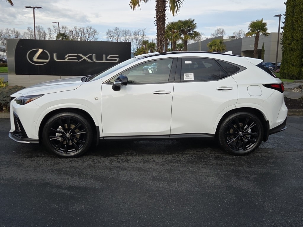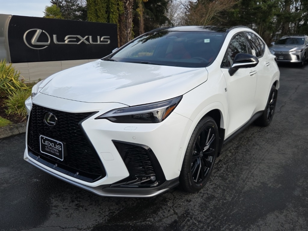 Ultra White 2026 Lexus NX 450h+ F SPORT AWD Continuously Variable (ECVT) 2.5L I4 DOHC 16V 2.5L I4 DOHC 16V, 10 Speakers, 2,000 Lb Towing Capacity, 20" Wheels, 4-Wheel Disc Brakes, ABS brakes, Activity Mount, Adaptive suspension, Advanced Park w/Remote Park, Air Conditioning, Alloy wheels, AM/FM radio: SiriusXM, Auto High-beam Headlights, Auto tilt-away steering wheel, Auto-dimming door mirrors, Auto-dimming Rear-View mirror, Automatic temperature control, Black Emblem Overlays, Brake assist, Bumpers: body-color, Delay-off headlights, Digital Key and SmartAccess Card Key, Driver door bin, Driver vanity mirror, Dual front impact airbags, Dual front side impact airbags, Electronic Stability Control, Emergency communication system: Safety Connect (up to 10-year trial subscription included), Exterior Parking Camera Rear, F SPORT Handling Luxury Package, F SPORT Heated and Ventilated Front Seats, Four wheel independent suspension, Front anti-roll bar, Front Bucket Seats, Front Center Armrest, Front Cross-Traffic Alert and Lane Change Assist, Front dual zone A/C, Front fog lights, Front reading lights, Fully automatic headlights, Garage door transmitter: HomeLink, Heads-Up Display, Heated door mirrors, Heated front seats, Heated steering wheel, Illuminated Door Sills with Lexus Logo, Illuminated entry, Knee airbag, Leather Shift Knob, Leather steering wheel, Lexus Interface with 14" Touchscreen Display, Lexus Multimedia Screen Protector, Low tire pressure warning, Navigation system: Drive Connect Cloud Navigation (3-year trial subscription included), NuLuxe Seat Trim, Occupant sensing airbag, Outside temperature display, Overhead airbag, Overhead console, Panic alarm, Panorama Glass Roof, Panoramic View Monitor, Passenger door bin, Passenger vanity mirror, Power door mirrors, Power driver seat, Power Liftgate, Power passenger seat, Power steering, Power windows, Radio data system, Radio: 10-Speaker Lexus Premium Sound System, Rain sensing wipers, Rear anti-roll bar, Rear reading lights, Rear seat center armrest, Rear window defroster, Rear window wiper, Remote keyless entry, Security system, Speed control, Speed-sensing steering, Speed-Sensitive Wipers, Split folding rear seat, Spoiler, Sport steering wheel, Steering wheel mounted audio controls, Tachometer, Telescoping steering wheel, Tilt steering wheel, Traction control, Trip computer, Turn signal indicator mirrors, Variably intermittent wipers, Ventilated front seats, Wheels: F SPORT 20" Split 5-Spoke Alloy, Wireless Apple CarPlay/Wireless Android Auto, Wireless Phone Charger, 2.5L I4 DOHC 16V.