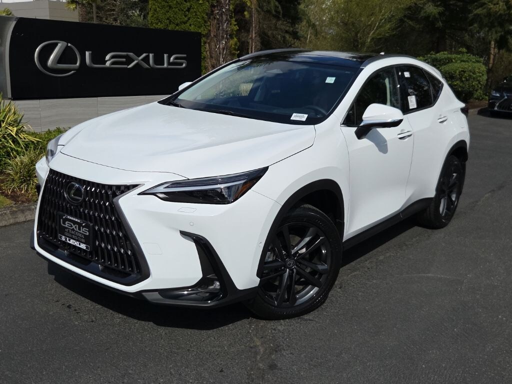 Ultra White 2026 Lexus NX 450h+ Luxury AWD Continuously Variable (ECVT) 2.5L I4 DOHC 16V 2.5L I4 DOHC 16V, 10 Speakers, 2,000 Lb Towing Capacity, 20" Wheels, 4-Wheel Disc Brakes, ABS brakes, Advanced Park with Remote Park, Air Conditioning, Alloy wheels, AM/FM radio: SiriusXM, Auto High-beam Headlights, Auto tilt-away steering wheel, Auto-dimming door mirrors, Auto-dimming Rear-View mirror, Automatic temperature control, Brake assist, Bumpers: body-color, Delay-off headlights, Digital Key and SmartAccess Card Key, Driver door bin, Driver vanity mirror, Dual front impact airbags, Dual front side impact airbags, Electronic Stability Control, Emergency communication system: Safety Connect (up to 10-year trial subscription included), Exterior Parking Camera Rear, Four wheel independent suspension, Front anti-roll bar, Front Bucket Seats, Front Center Armrest, Front Cross-Traffic Alert and Lane Change Assist, Front dual zone A/C, Front fog lights, Front reading lights, Fully automatic headlights, Garage door transmitter: HomeLink, Genuine wood door panel insert, Heads-Up Display, Heated and Ventilated Front Seats, Heated door mirrors, Heated front seats, Heated steering wheel, Illuminated entry, Knee airbag, Leather Seat Trim, Leather Shift Knob, Leather steering wheel, Lexus Interface with 14" Touchscreen Display, Lexus Multimedia Screen Protector, Low tire pressure warning, Mark Levinson 17-Speaker PurePlay Surround Sound, Memory seat, Navigation system: Drive Connect Cloud Navigation (3-year trial subscription included), Occupant sensing airbag, Outside temperature display, Overhead airbag, Overhead console, Panic alarm, Panorama Glass Roof, Panoramic View Monitor, Passenger door bin, Passenger vanity mirror, Power door mirrors, Power driver seat, Power Liftgate, Power moonroof, Power passenger seat, Power steering, Power windows, Radio data system, Radio: 10-Speaker Lexus Premium Sound System, Rain sensing wipers, Rear anti-roll bar, Rear reading lights, Rear seat center armrest, Rear window defroster, Rear window wiper, Remote keyless entry, Security system, Speed control, Speed-sensing steering, Speed-Sensitive Wipers, Split folding rear seat, Spoiler, Steering wheel memory, Steering wheel mounted audio controls, Tachometer, Telescoping steering wheel, Tilt steering wheel, Traction control, Trip computer, Turn signal indicator mirrors, Variably intermittent wipers, Ventilated front seats, Wheels: 20" Split 5-Spoke Alloy, Wireless Apple CarPlay/Wireless Android Auto, Wireless Phone Charger, 2.5L I4 DOHC 16V.Recent Arrival!