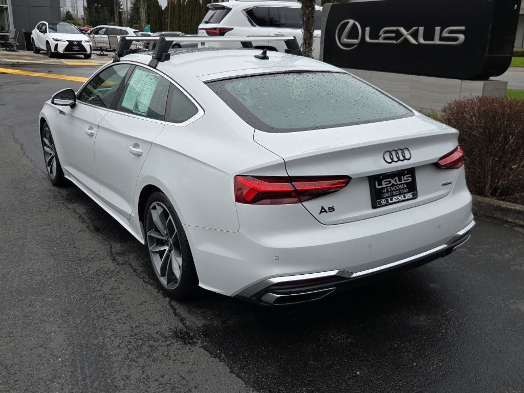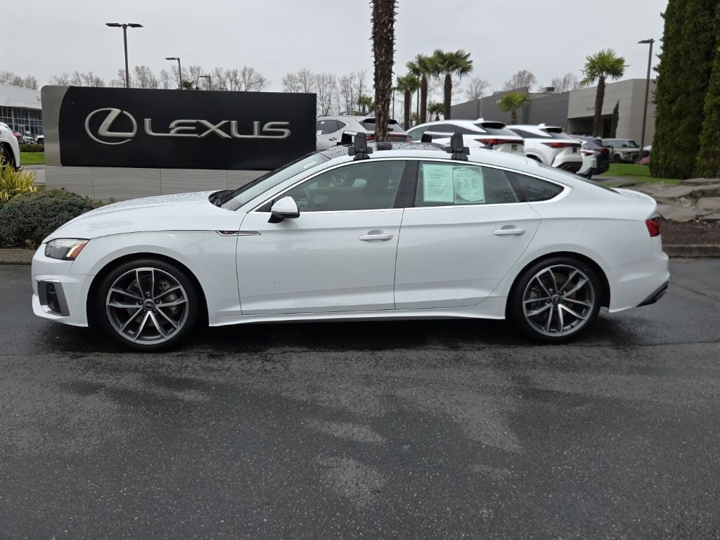 2022 Audi A5 Sportback S Line quattro Glacier White Metallic quattro 2.0L 4-Cylinder TFSI 7-Speed Automatic S tronic10 Speakers, 4-Wheel Disc Brakes, ABS brakes, Air Conditioning, Alloy wheels, AM/FM radio, Anti-whiplash front head restraints, Auto High-beam Headlights, Auto-dimming Rear-View mirror, Automatic temperature control, Brake assist, Bumpers: body-color, Compass, Delay-off headlights, Driver door bin, Driver vanity mirror, Dual front impact airbags, Dual front side impact airbags, Electronic Stability Control, Emergency communication system: Audi connect CARE, Exterior Parking Camera Rear, Four wheel independent suspension, Front anti-roll bar, Front Bucket Seats, Front Center Armrest, Front dual zone A/C, Front fog lights, Front reading lights, Garage door transmitter: HomeLink, Genuine wood console insert, Genuine wood dashboard insert, Genuine wood door panel insert, Heated door mirrors, Heated Front Bucket Seats, Heated front seats, Illuminated entry, Knee airbag, Leather Seating Surfaces, Leather Shift Knob, Leather steering wheel, Low tire pressure warning, Occupant sensing airbag, Outside temperature display, Overhead airbag, Overhead console, Panic alarm, Passenger door bin, Passenger vanity mirror, Power adjustable front head restraints, Power door mirrors, Power driver seat, Power Liftgate, Power moonroof, Power passenger seat, Power steering, Power windows, Radio data system, Radio: Audi Sound System, Rain sensing wipers, Rear air conditioning, Rear anti-roll bar, Rear reading lights, Rear seat center armrest, Rear window defroster, Remote keyless entry, Speed control, Speed-sensing steering, Speed-Sensitive Wipers, Split folding rear seat, Steering wheel mounted audio controls, Tachometer, Telescoping steering wheel, Tilt steering wheel, Traction control, Trip computer, Turn signal indicator mirrors, Variably intermittent wipers, Wheels: 18 Double-Spoke-Star Design.Clean CARFAX.24/31 City/Highway MPGPlease contact for availability as vehicles may sell or become unavailable at any time. Vehicle is located at 1708 40th Ave Court East in Fife, WA. All vehicles are one of each. All Pre-Owned or Certified vehicles are Used. A dealer documentary service fee of up to $200 may be added to the sale price or capitalized cost. All offers expire on close of business the day subject content is removed from website, and all financing is subject to credit approval. Prices exclude tax, title and license. All transactions are negotiable including price, trade allowance, interest rate (of which the dealer may retain a portion), term and documentary service fee. Any agreement is subject to execution of contract documents. It is the customer's responsibility to verify the existence and condition of any equipment listed.
