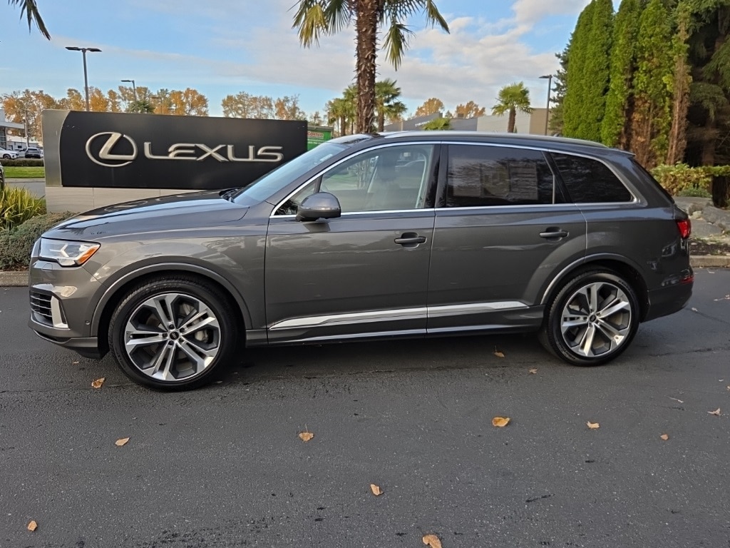 2023 Audi Q7 quattro Gray quattro 3.0L TFSI 8-Speed Automatic with TiptronicRecent Arrival! Local One Owner Trade-In.10 Speakers, 3.204 Axle Ratio, 3rd row seats: bench, 4-Wheel Disc Brakes, ABS brakes, Air Conditioning, Alloy wheels, AM/FM radio: SiriusXM w/ 360L, Auto High-beam Headlights, Auto-dimming door mirrors, Auto-dimming Rear-View mirror, Automatic temperature control, Brake assist, Bumpers: body-color, Compass, Delay-off headlights, Driver door bin, Driver vanity mirror, Dual front impact airbags, Dual front side impact airbags, Electronic Stability Control, Emergency communication system: Audi connect CARE, Exterior Parking Camera Rear, Four wheel independent suspension, Front anti-roll bar, Front Bucket Seats, Front Center Armrest, Front dual zone A/C, Front fog lights, Front reading lights, Fully automatic headlights, Garage door transmitter: HomeLink, Genuine wood door panel insert, Heated door mirrors, Heated Front Bucket Seats, Heated front seats, Illuminated entry, Leather Seating Surfaces, Leather Shift Knob, Leather steering wheel, Low tire pressure warning, Memory seat, Navigation system: Audi MMI Navigation plus with Touch Response, Occupant sensing airbag, Outside temperature display, Overhead airbag, Overhead console, Panic alarm, Passenger door bin, Passenger vanity mirror, Power door mirrors, Power driver seat, Power Liftgate, Power moonroof: Panoramic, Power passenger seat, Power steering, Power windows, Radio data system, Radio: Audi Sound System, Rain sensing wipers, Rear air conditioning, Rear anti-roll bar, Rear fog lights, Rear reading lights, Rear seat center armrest, Rear side impact airbag, Rear window defroster, Rear window wiper, Reclining 3rd row seat, Remote keyless entry, Roof rack: rails only, Security system, Speed control, Speed-sensing steering, Split folding rear seat, Spoiler, Steering wheel memory, Steering wheel mounted audio controls, Tachometer, Telescoping steering wheel, Tilt steering wheel, Traction control, Trip computer, Turn signal indicator mirrors, Variably intermittent wipers, Wheels: 19 5-Arm-Star Design.Please contact for availability as vehicles may sell or become unavailable at any time. Vehicle is located at 1708 40th Ave Court East in Fife, WA. All vehicles are one of each. All Pre-Owned or Certified vehicles are Used. A dealer documentary service fee of up to $200 may be added to the sale price or capitalized cost. All offers expire on close of business the day subject content is removed from website, and all financing is subject to credit approval. Prices exclude tax, title and license. All transactions are negotiable including price, trade allowance, interest rate (of which the dealer may retain a portion), term and documentary service fee. Any agreement is subject to execution of contract documents. It is the customer's responsibility to verify the existence and condition of any equipment listed.