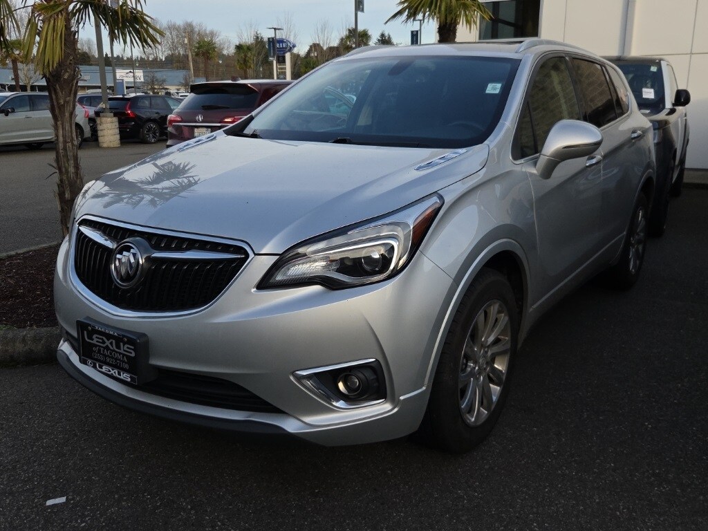 2019 Buick Envision Essence Galaxy Silver Metallic AWD 2.5L 4-Cylinder DGI DOHC VVT 6-Speed AutomaticRecent Arrival!18 10-Spoke Polished Aluminum Wheels, 3.50 Final Drive Axle Ratio, 4-Wheel Disc Brakes, 6 Speakers, 6-Speaker Audio System Feature, ABS brakes, Air Conditioning, Alloy wheels, AM/FM radio: SiriusXM, Apple CarPlay/Android Auto, Auto-dimming door mirrors, Auto-dimming Rear-View mirror, Automatic temperature control, Brake assist, Bumpers: body-color, Compass, Delay-off headlights, Driver 8-Way Power Seat Adjuster, Driver door bin, Driver vanity mirror, Dual front impact airbags, Dual front side impact airbags, Electronic Stability Control, Emergency communication system: OnStar and Buick connected services capable, Exterior Parking Camera Rear, Four wheel independent suspension, Front anti-roll bar, Front Bucket Seats, Front Center Armrest, Front dual zone A/C, Front fog lights, Front Passenger 8-Way Power Seat Adjuster, Front reading lights, Fully automatic headlights, Garage door transmitter, Heated door mirrors, Heated Driver & Front Passenger Seats, Heated front seats, Heated rear seats, Heated steering wheel, High-Intensity Discharge Headlights, Illuminated entry, Knee airbag, Leather Shift Knob, Low tire pressure warning, Memory seat, Occupant sensing airbag, Outside temperature display, Overhead airbag, Overhead console, Panic alarm, Passenger door bin, Passenger vanity mirror, Perforated Leather-Appointed Seat Trim, Power door mirrors, Power driver seat, Power Liftgate, Power Panoramic Tilt-Sliding Moonroof, Power passenger seat, Power steering, Power windows, Preferred Equipment Group 1SL, Radio data system, Radio: Buick Infotainment System AM/FM Stereo, Radio: Buick Infotainment System AM/FM w/Nav, Rear air conditioning, Rear anti-roll bar, Rear reading lights, Rear seat center armrest, Rear side impact airbag, Rear window defroster, Rear window wiper, Remote keyless entry, Roof rack: rails only, Security system, SiriusXM Radio, Speed control, Speed-sensing steering, Split folding rear seat, Spoiler, Steering wheel mounted audio controls, Tachometer, Telescoping steering wheel, Tilt steering wheel, Traction control, Trip computer, Turn signal indicator mirrors, Variably intermittent wipers.CARFAX One-Owner. Clean CARFAX.21/27 City/Highway MPGPlease contact for availability as vehicles may sell or become unavailable at any time. Vehicle is located at 1708 40th Ave Court East in Fife, WA. All vehicles are one of each. All Pre-Owned or Certified vehicles are Used. A dealer documentary service fee of up to $200 may be added to the sale price or capitalized cost. All offers expire on close of business the day subject content is removed from website, and all financing is subject to credit approval. Prices exclude tax, title and license. All transactions are negotiable including price, trade allowance, interest rate (of which the dealer may retain a portion), term and documentary service fee. Any agreement is subject to execution of contract documents. It is the customer's responsibility to verify the existence and condition of any equipment listed.Awards: * JD Power Dependability Study
