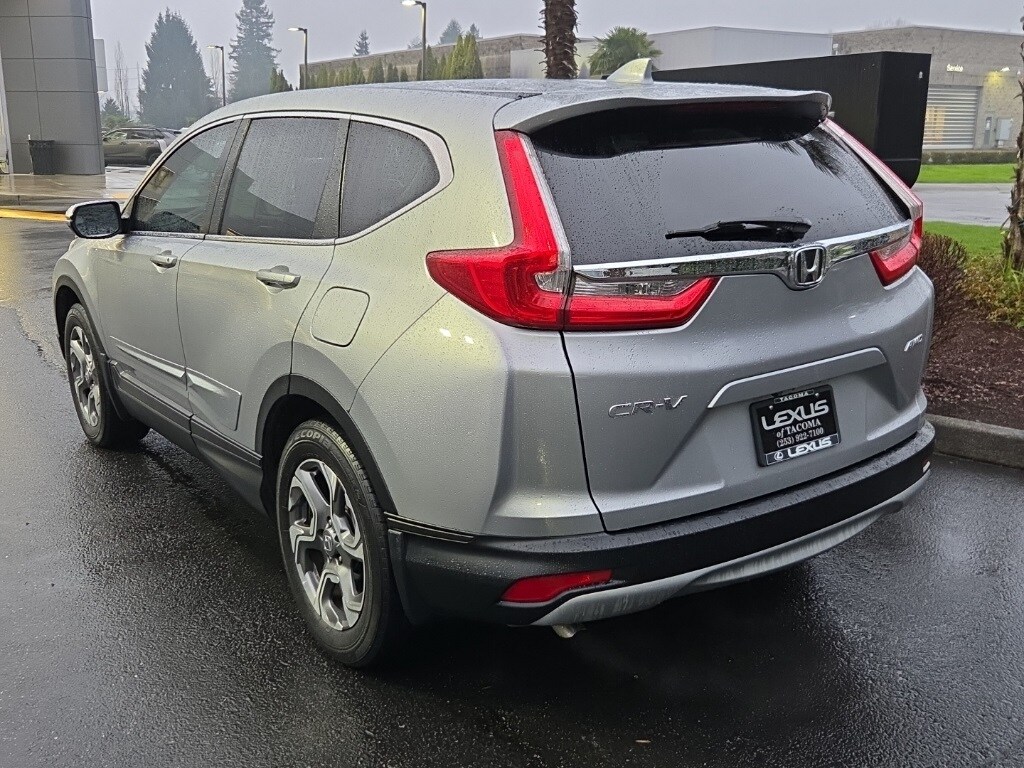 2018 Honda CR-V EX Lunar Silver Metallic AWD 1.5L I4 DOHC 16V CVTRecent Arrival! Local One Owner Trade-In.AWD, 18 Alloy Wheels, 4-Wheel Disc Brakes, 5.64 Axle Ratio, 6 Speakers, ABS brakes, Air Conditioning, Alloy wheels, AM/FM radio: SiriusXM, Apple CarPlay/Android Auto, Auto High-beam Headlights, Automatic temperature control, Blind Spot Information (BSI) System warning, Brake assist, Bumpers: body-color, Cloth Seat Trim, Compass, Delay-off headlights, Driver door bin, Driver vanity mirror, Dual front impact airbags, Dual front side impact airbags, Electronic Stability Control, Exterior Parking Camera Rear, Four wheel independent suspension, Front anti-roll bar, Front Bucket Seats, Front Center Armrest, Front dual zone A/C, Front fog lights, Front reading lights, Fully automatic headlights, Heated door mirrors, Heated Front Bucket Seats, Heated front seats, Illuminated entry, Low tire pressure warning, Occupant sensing airbag, Outside temperature display, Overhead airbag, Overhead console, Panic alarm, Passenger door bin, Passenger vanity mirror, Power door mirrors, Power driver seat, Power moonroof, Power steering, Power windows, Radio data system, Radio: AM/FM Audio System w/6 Speakers, Rear anti-roll bar, Rear seat center armrest, Rear window defroster, Rear window wiper, Remote keyless entry, Security system, Speed control, Speed-sensing steering, Speed-Sensitive Wipers, Split folding rear seat, Spoiler, Steering wheel mounted audio controls, Tachometer, Telescoping steering wheel, Tilt steering wheel, Traction control, Trip computer, Turn signal indicator mirrors, Variably intermittent wipers, AWD.CARFAX One-Owner.Odometer is 54275 miles below market average! 27/33 City/Highway MPGPlease contact for availability as vehicles may sell or become unavailable at any time. Vehicle is located at 1708 40th Ave Court East in Fife, WA. All vehicles are one of each. All Pre-Owned or Certified vehicles are Used. A dealer documentary service fee of up to $200 may be added to the sale price or capitalized cost. All offers expire on close of business the day subject content is removed from website, and all financing is subject to credit approval. Prices exclude tax, title and license. All transactions are negotiable including price, trade allowance, interest rate (of which the dealer may retain a portion), term and documentary service fee. Any agreement is subject to execution of contract documents. It is the customer's responsibility to verify the existence and condition of any equipment listed.Awards: * Motor Trend Automobiles of the year * 2018 KBB.com Brand Image Awards * 2018 KBB.com 10 Most Awarded BrandsKelley Blue Book Brand Image Awards are based on the Brand Watch(tm) study from Kelley Blue Book Market Intelligence. Award calculated among non-luxury shoppers. For more information, visit www.kbb.com. Kelley Blue Book is a registered trademark of Kelley Blue Book Co., Inc.