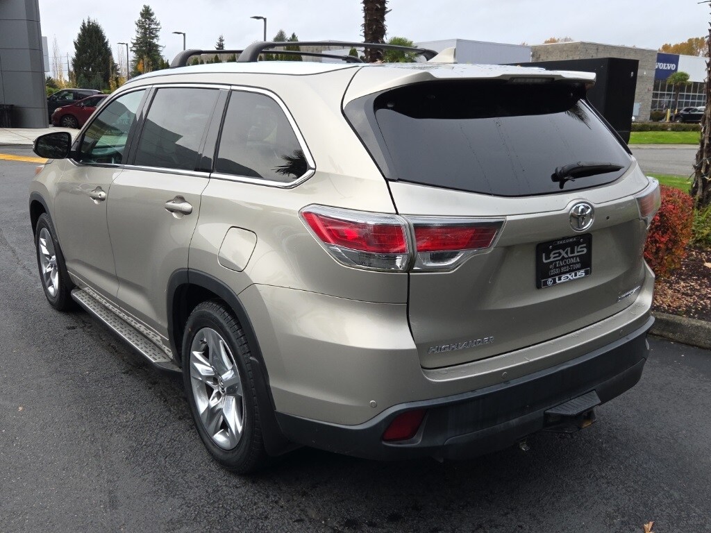 2016 Toyota Highlander Limited Creme Brulee Mica AWD 3.5L V6 DOHC Dual VVT-i 24V 6-Speed Automatic Electronic with OverdriveAWD, 12 Speakers, 3rd row seats: split-bench, 4-Wheel Disc Brakes, 4.154 Axle Ratio, ABS brakes, Air Conditioning, Alloy Wheel Locks, Alloy wheels, AM/FM radio: SiriusXM, Auto-dimming Rear-View mirror, Automatic High Beams, Automatic temperature control, Brake assist, Bumpers: body-color, Cargo Net, CD player, Delay-off headlights, Driver door bin, Driver vanity mirror, Dual front impact airbags, Dual front side impact airbags, Electronic Stability Control, Exterior Parking Camera Rear, Four wheel independent suspension, Front anti-roll bar, Front Bucket Seats, Front Center Armrest, Front dual zone A/C, Front fog lights, Front reading lights, Fully automatic headlights, Garage door transmitter, Heated door mirrors, Heated front seats, Heated/Ventilated Front Bucket Seats, Illuminated entry, Knee airbag, Lane Departure Alert, Leather Shift Knob, Low tire pressure warning, Memory seat, Navigation System, Occupant sensing airbag, Outside temperature display, Overhead airbag, Overhead console, Panic alarm, Passenger door bin, Passenger vanity mirror, Perforated Leather Seat Material, Power door mirrors, Power driver seat, Power Liftgate, Power moonroof, Power passenger seat, Power steering, Power windows, Pre-Collision System w/Dynamic Radar Cruise Ctrl, Radio: Entune Premium JBL Audio w/Nav & App Suite, Rear air conditioning, Rear anti-roll bar, Rear Parking Sensors, Rear reading lights, Rear window defroster, Rear window wiper, Reclining 3rd row seat, Remote keyless entry, Roof rack: rails only, Safety Connect, Security system, Speed control, Speed-sensing steering, Split folding rear seat, Spoiler, Steering wheel mounted audio controls, Tachometer, Telescoping steering wheel, Tilt steering wheel, Traction control, Trip computer, Turn signal indicator mirrors, Variably intermittent wipers, Ventilated front seats, Wheels: 19 5-Spoke Chromtec Alloy, AWD.Please contact for availability as vehicles may sell or become unavailable at any time. Vehicle is located at 1708 40th Ave Court East in Fife, WA. All vehicles are one of each. All Pre-Owned or Certified vehicles are Used. A dealer documentary service fee of up to $200 may be added to the sale price or capitalized cost. All offers expire on close of business the day subject content is removed from website, and all financing is subject to credit approval. Prices exclude tax, title and license. All transactions are negotiable including price, trade allowance, interest rate (of which the dealer may retain a portion), term and documentary service fee. Any agreement is subject to execution of contract documents. It is the customer's responsibility to verify the existence and condition of any equipment listed.Awards: * 2016 KBB.com Best Buy Awards Finalist * 2016 KBB.com 16 Best Family Cars
